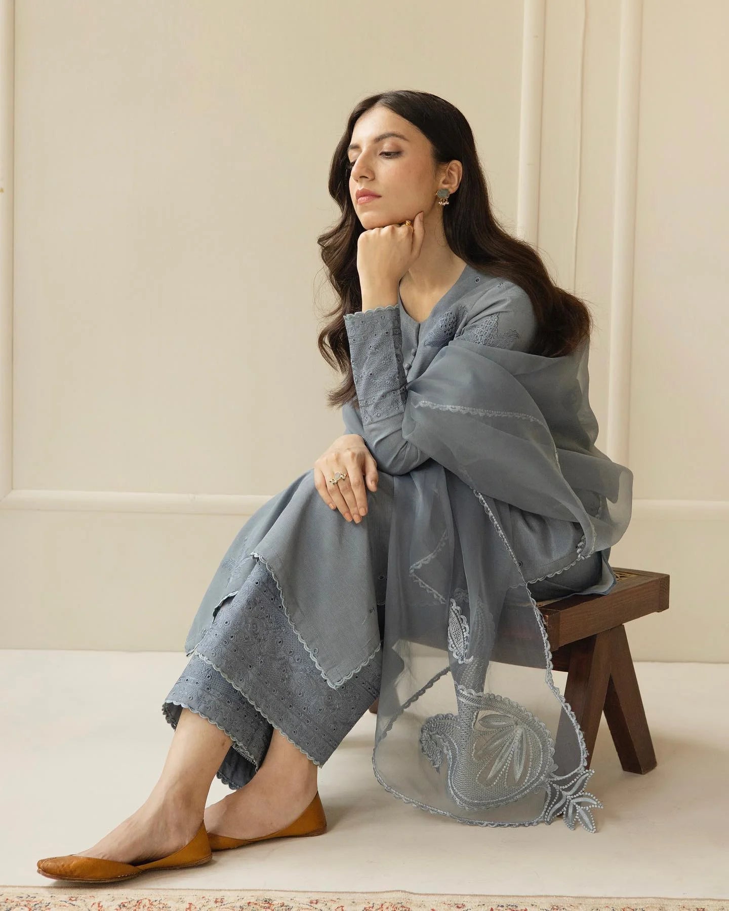 Lawn Embroidered Shirt Organza Embroidered Dupatta Lawn Trouser Free Home Delivery